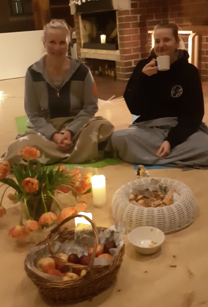 Illan päätti jutteluhetki teetä ja pientä naposteltavaa nauttien.
