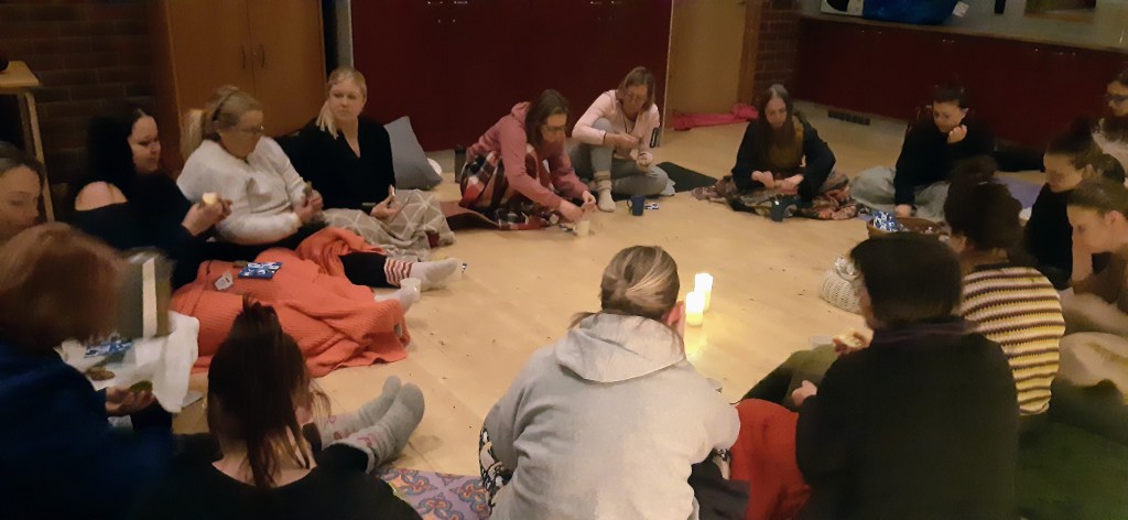 Paljon ihania naisia, äitejä tyttärineen, ystävyksiä ja kavereita joogaamassa ja rentotumassa. Hyvä tunnelma ja iloisuus täytti tilan. Kiitos kaikille.